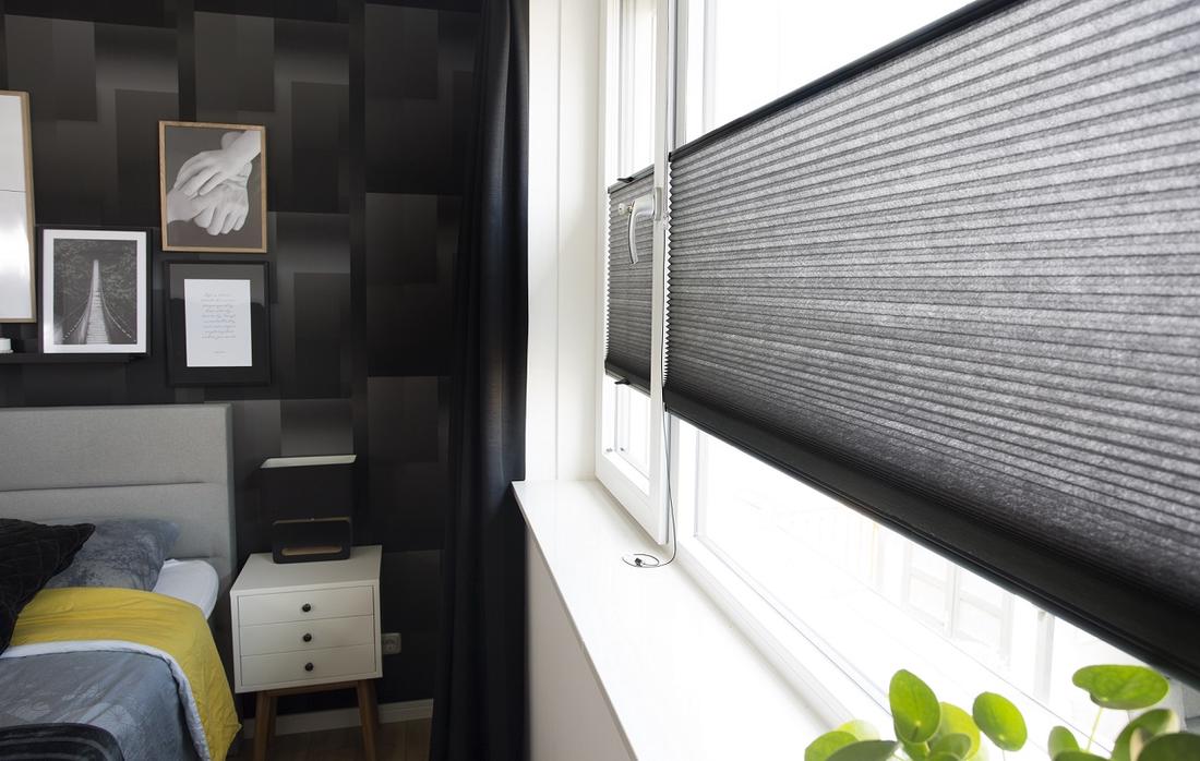 Plissé gordijnen zijn verkrijgbaar in verschillende kleuren zoals zwart.