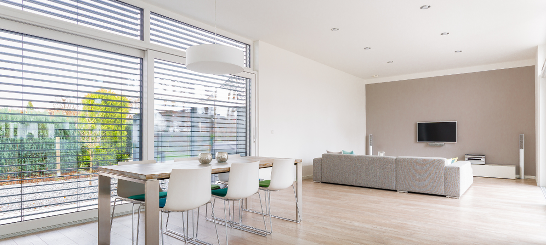 Ga bijvoorbeeld voor een metallic afwerking voor een extra industrieel gevoel. Ga voor zwart of grijs om het minimalistische gevoel van een industrieel interieur te benadrukken. Zorg wel dat het niet te koud overkomt en combineer aluminium met een zachter materiaal. Ga bijvoorbeeld voor een stoffen ladderband tussen de aluminium lamellen.