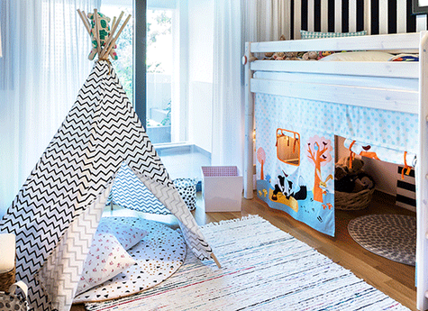 Ruimtelijk effect. De planken kun je in alle richtingen plaatsen. Kies bijvoorbeeld voor een verticale plaatsing om de ruimte hoger te laten lijken.
