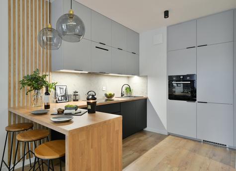 Variatie in hoogte. Lamitaat kan je helemaal tot aan het plafond aanleggen. Tot halverwege of slechts een rand.