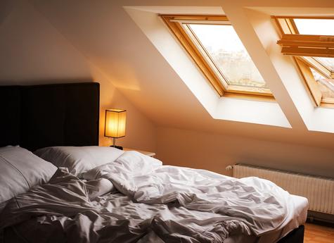Kies voor kasten over de volledige breedte van de kamer en in de kleur van de muur voor een onopvallende én ruime opslag.