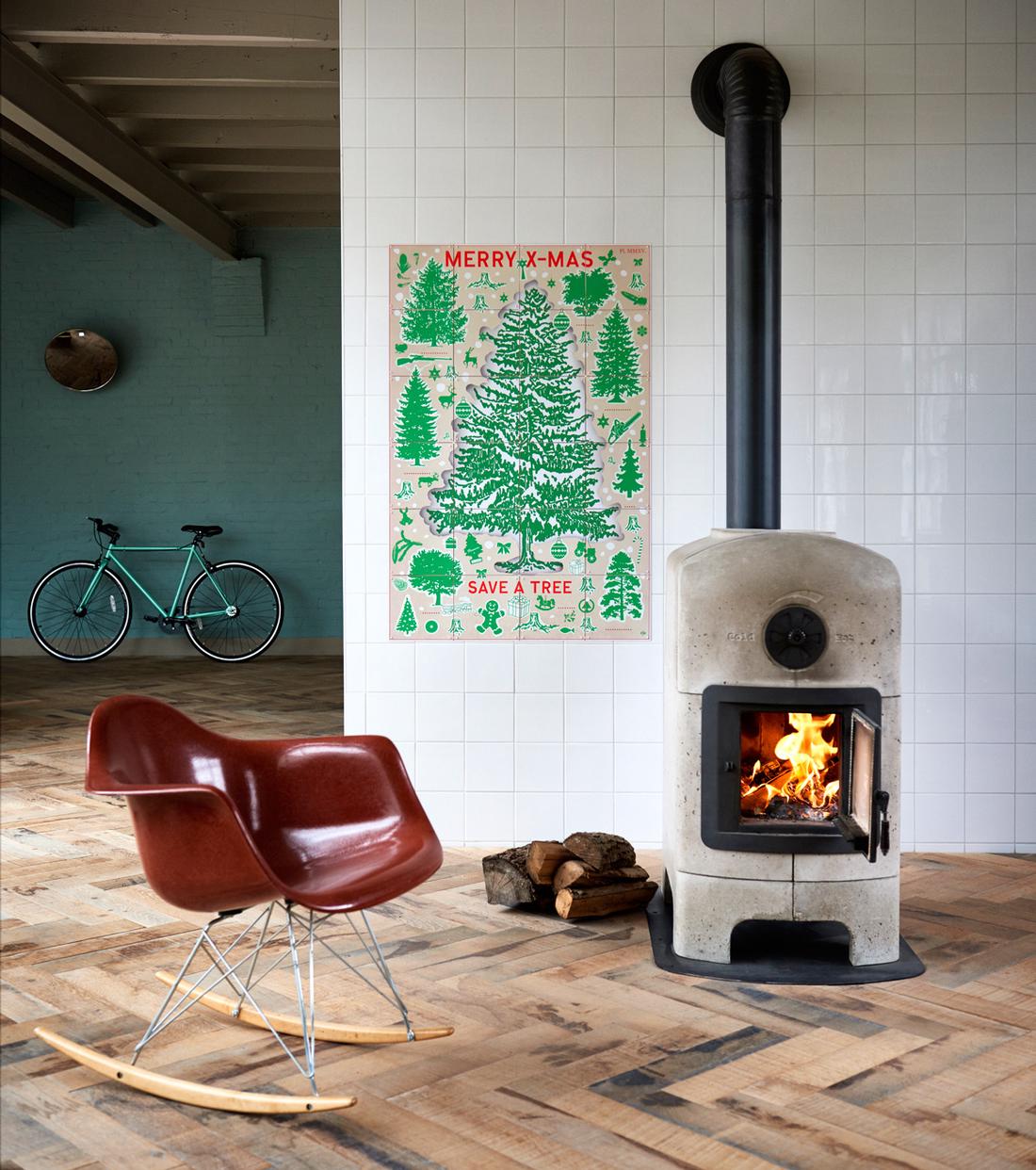 Een IXXI met een kerstboom aan de muur