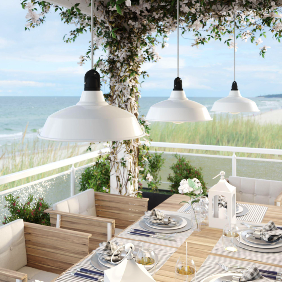 Ook buiten kun je bedrading aanleggen voor buitenlampen en andere elektrische apparaten.Geniet langer van het mooie weer met hanglampen buiten boven de eettafel.