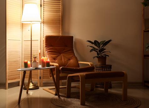 Gebruik dimmers of warmere lichtkleuren om ’s avonds een prettigere sfeer te creëren.