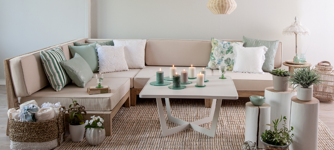 Je kunt ook kiezen voor een lichtkleurige bank. Deze kan je opfleuren met vrolijke kussen voor een mooi contrast.