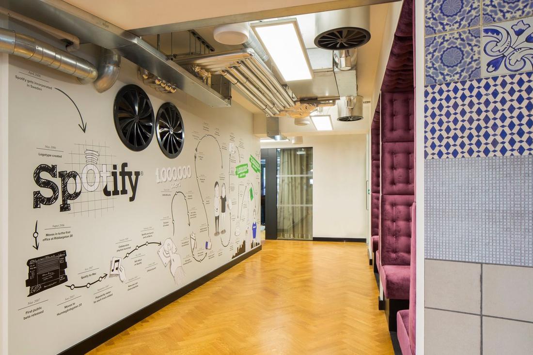 Het interieur is geinspireerd op Spotify’s hoofdkantoor in Stockholm, maar heeft een Londense twist!