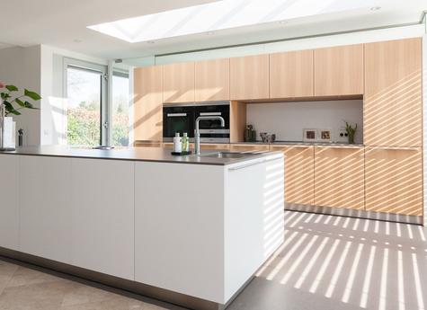Een inbouwvaatwasser bouw je in onder het aanrechtblad. Het paneel aan de voorkant geef je dezelfde look als de rest van de keukenkastjes. Daardoor valt de vaatwasser niet op in de keuken. Ook kun je de keukenplint door laten lopen. De uitstraling van je keuken blijft hierdoor een mooi geheel.