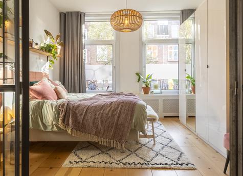 Zorg in jouw slaapkamer voor voldoende ventilatie en een goed dekbedovertrek dat ademt.Een rustige slaapkamer met een minimalistische, Scandinavische inrichting, zonder afleiding van elektronische apparaten.