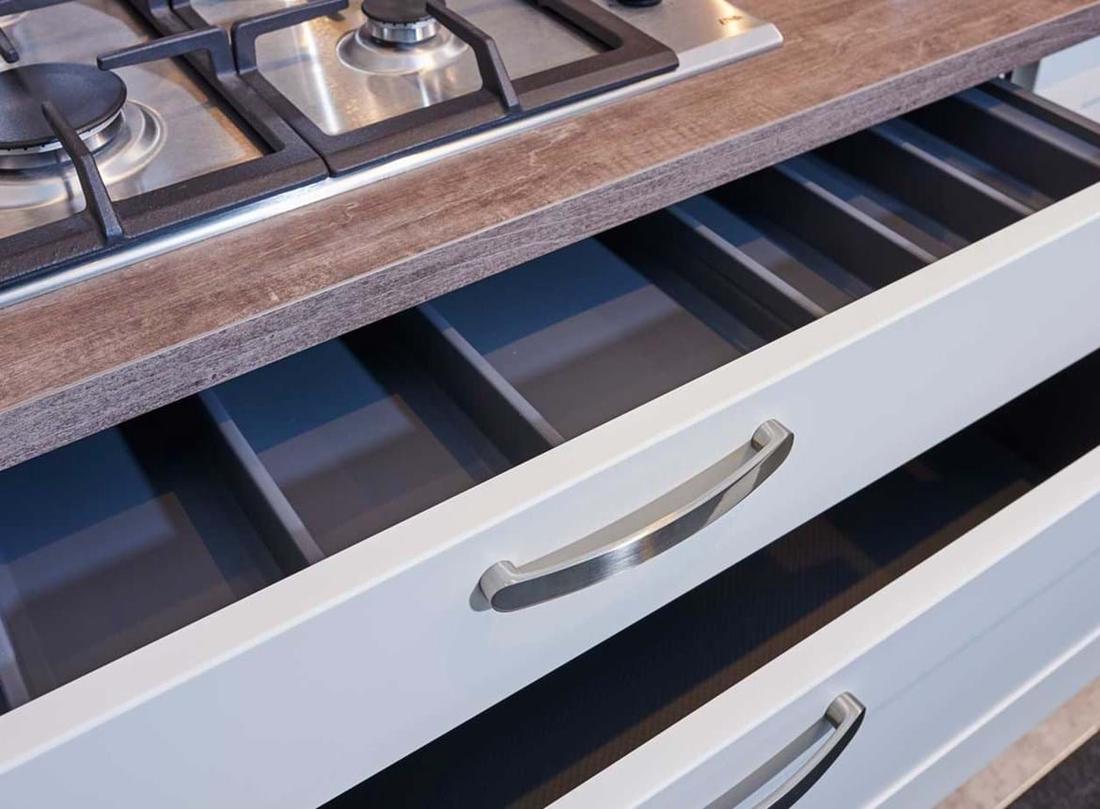 Ook niet onbelangrijk: de keukens van DB Keukens zijn voorzien van metalen laden en korfladen. Deze bevatten geruisloze demping. De keukens zijn verkrijgbaar in drie verschillende kasthoogtes waarmee je de hoogte van je aanrechtblad kunt bepalen. Zo kun je op de ideale hoogte werken in jouw keuken.